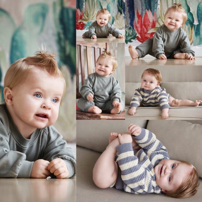 I love this stage because it’s when we start to see big personalities and new expressions emerging. Smiles at this age often feature adorable baby teeth, adding even more charm to their joyful faces. It’s a delightful time to capture their curiosity and growing independence. Baby’s are also showing their crawling skills by this time, adding a variety of image options.