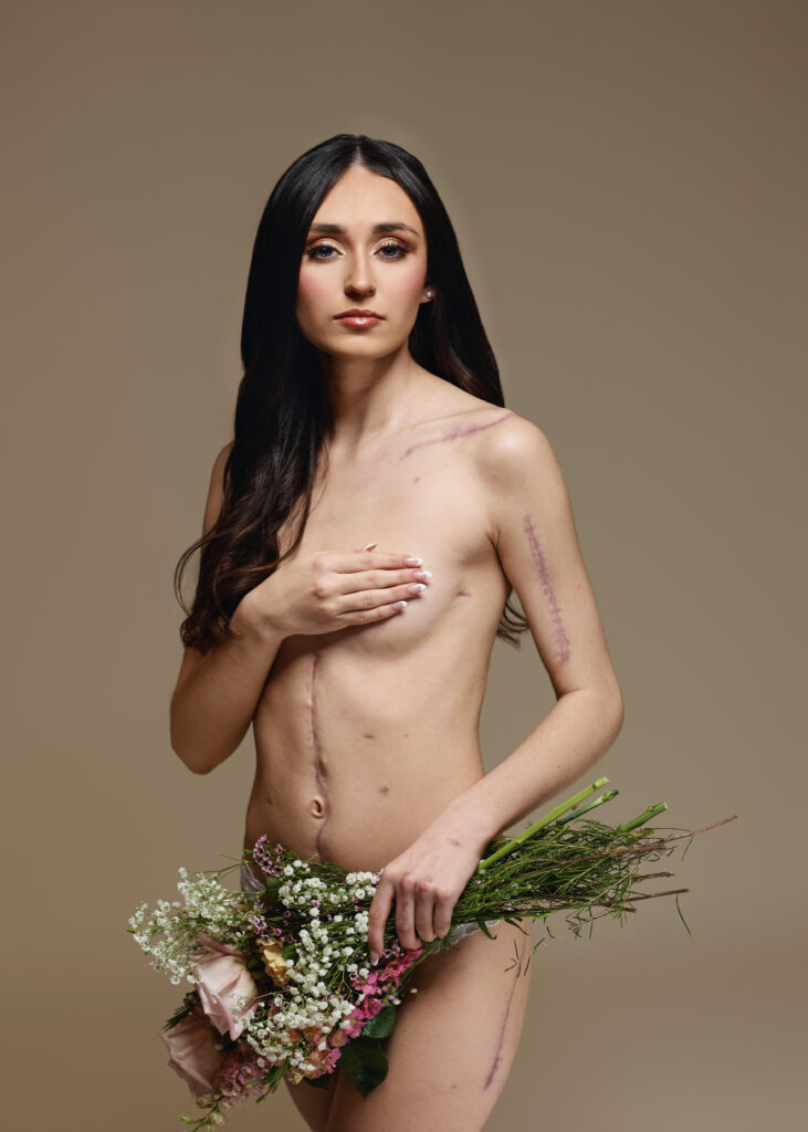 One of the reasons I looked into doing this session was to display my scars as something that I didn’t want to hide, but something that I wanted other people to think were beautiful. This told a story of survival. And I wanted others who have scars to not be afraid of theirs as well.